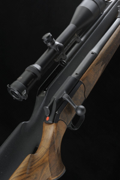 BLASER A THREE BARREL R93 RIFLE OUTFIT comprising: a .375 H&H straight pull bolt-action sporting rifle, no. 9/55358, 25-inch barrel with ramp fore sight and adjustable rear sight, the bolt with push-forward safety, the half length highly figured stock with pistol grip, cheekpiece and maker's butt plate, 14 1/2-inch pull, sling swivels, German nitro proof; the .300 WSM barrel, no. 9/92302, mounted to a separate chassis with interchangeable synthetic stock, the 25-inch barrel with ramp fore sight and adjustable rear sight and mounted with a Swarovski Habicht 2.5-10x56 telescopic sight, in quick detachable mounts, 14-inch pull; the 22-inch interchangeable 6.5x55mm barrel, no. 9/57094, with ramp fore sight and adjustable rear sight, the whole outfit complete with interchangeable bolt-head and magazine insert, instruction booklet, etc S1 |