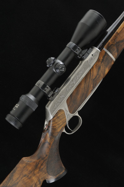SAUER A .25-06 MODEL 202 LEFT-HANDED BOLT-ACTION SPORTING RIFLE, NO. H31202, A TWO BARREL SET 23 1/2-inch barrel fitted with a sound moderator, the interchangeable .30-06 23 1/2-inch barrel fitted with a sound moderator, the left-handed receiver with fine scroll engraving and mounted with a Zeiss Diavari-V 2.5-10x50 telescopic sight, detachable box magazine, the highly figured three-piece stock with pistol grip, cheekpiece and rubber recoil pad, 14-inch pull, 11lb. 8oz., nitro proof S1 |