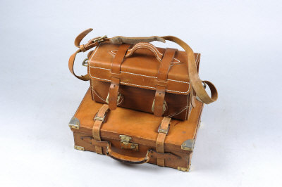A BRASSBOUND LEATHER CARTRIDGE MAGAZINE with compartments for about 250 cases; together with a leather cartridge case (2) |