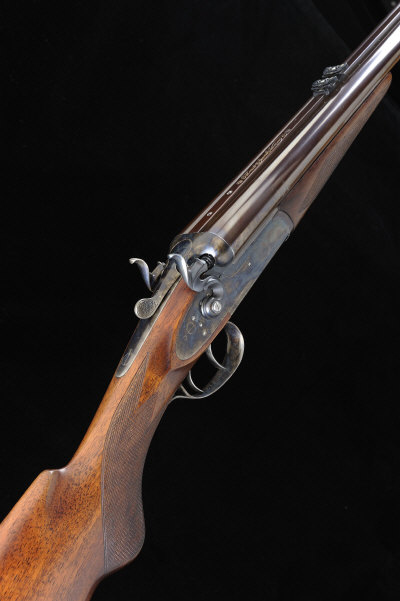 A PEDERSOLI .45-70 DOUBLE BARREL HAMMER RIFLE, NO. C5494 24-inch barrels with raised fore sight and two folding leaf sights, the rib impressed Trail Guns Armory, the frame, rebounding bar lock, hammers and top lever retaining original hardening colour, 15-inch figured stock with pistol grip, cheekpiece and recoil pad, 11lb. 4oz., Italian nitro proof |