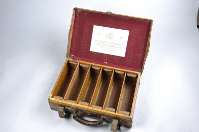 HOLLAND & HOLLAND A BRASSBOUND OAK AND LEATHER CARTRIDGE MAGAZINE for about 300 cases, with leather straps and oak dividers |