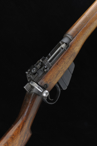 A .223 (5.56MM) NO.4 MARK I BOLT-ACTION SERVICE RIFLE, NO. T15531 - WITHDRAWN 25 1/2-inch replacement barrel and bolt head, the frame with folding aperture sight, detachable box magazine, dated 1942, full length stock, 13-inch pull, nitro proof S1 |