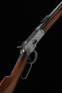 20-inch barrel with folding ladder sight, half length magazine, the receiver with saddle ring and retaining some original finish, 12 3/4-inch stock with steel butt plate, 5lb. 10oz., nitro proof