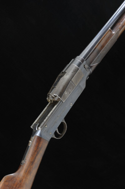 A SCARCE 12-BORE SYSTEM SJOGREN PATENT SELF-LOADING GUN, NO. 2034 28-inch barrel with 2 1/2-inch chamber, about 3/4 choke boring, unrestricted magazine capacity, the recoiling breech block with chequered side panels and flag and tang safeties, 14 1/2-inch figured stock with maker's butt plate, 7lb. 5oz., nitro proof S1 |