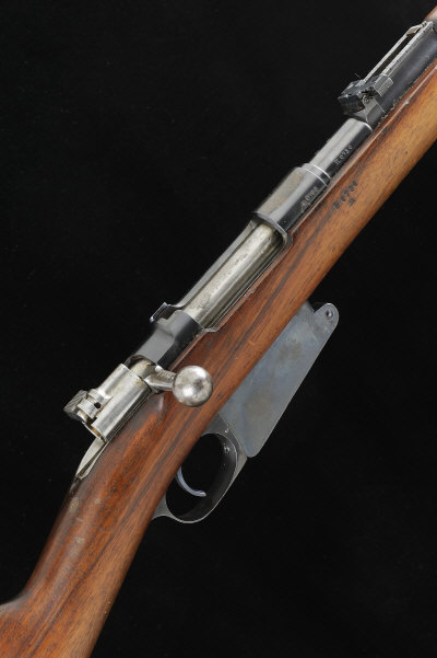 MAUSER A 7.65MM "ARGENTINE" MODEL 1891 BOLT-ACTION SERVICE RIFLE, NO. B6786 29-inch barrel with folding ladder rear sight, bolt with flag safety, the three quarter length stock with hand guard and steel furniture, 13 1/4-inch pull, 8lb. 7oz., nitro proof S1 |