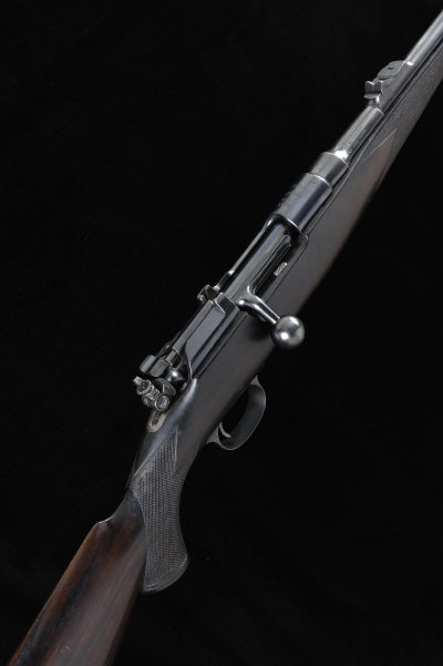 MANNLICHER SCHOENAUER A 6.5MM M1900 BOLT-ACTION SPORTING RIFLE, NO. 6080, RETAILED BY JOHN DICKSON & SON 22 1/2-inch barrel with ramp fore sight, rear sight with folding leaves, bolt with flag safety, bulbous handle and cocking piece mounted peep sight, rotary magazine, the half length stock with pistol grip and steel butt plate, 14 1/4-inch pull, 7lb. 4oz., nitro proof, in its maker's canvas full length case S1 |