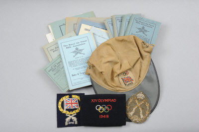 A GROUP OF OLYMPIC SHOOTING INTEREST ITEMS, AIR VICE MARSHAL W. E. STATON comprising: 1948 London Olympic patch; 1952 Olympic cap; and a comprehensive archive of Royal Air Force Small Association programmes, dating from 1926 to 1969