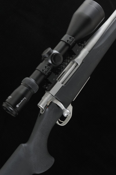 HOWA A .243 MODEL 1500 BOLT-ACTION SPORTING RIFLE, NO. B388132 20-inch barrel fitted with a Nielson Sonic sound moderator, no. 015171, the receiver mounted with Nikko Sterling telescopic sight, bolt with side safety and detachable box magazine, half length synthetic stock with rubber recoil pad, 14-inch pull, 9lb. 14oz., nitro proof S1 |