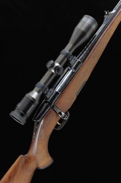 MANNLICHER A .243 "LUXUS" MODEL BOLT-ACTION SPORTING RIFLE, NO. 257360 23 1/2-inch barrel with ramp fore sight and raised rear sight, the receiver mounted with a Swarovski Habicht 6x42 telescopic sight, bolt with tang safety, set trigger, half length stock with pistol grip, cheekpiece and rubber recoil pad, 8lb. 2oz., Austrian nitro proof, magazine missing S1 |