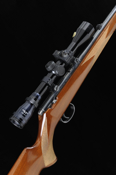 22-inch barrel fitted with a sound moderator, the receiver mounted with a Tasco telescopic sight, half length stock with pistol grip and maker's butt plate, 14-inch pull, sling swivels, 6lb. 7oz., German nitro proof