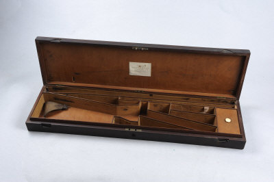 the leather lined interior with compartment for 30-inch barrels, fitted for a percussion gun, in its leather slip cover