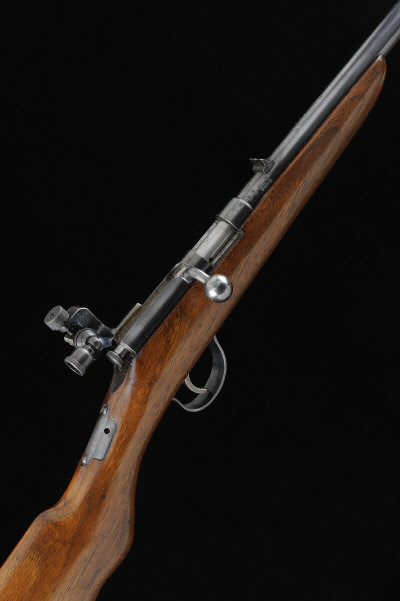 BSA A .22 MODEL 1 BOLT-ACTION SINGLE SHOT RIFLE, NO. 7299 19 1/2-inch barrel with fixed sights, the receiver fitted with a Parker Hale PH16 aperture rear sight, the half length stock with semi pistol grip, 13 1/2-inch pull, 4lb. 4oz., black powder proof S1 |