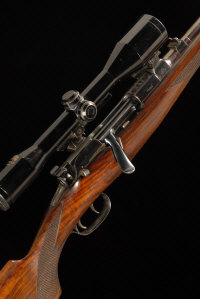 MANNLICHER A 6.5X57MM MODEL 1952 BOLT ACTION SPORTING RIFLE, NO. 23454 23 1/2-inch barrel with ramp foresight and fixed rearsight, the receiver with matted top surface and mounted with a Hensoldt Diatal 6x42 telescopic sight, bolt with flag safety, double set triggers, the half length well figured stock with pistol grip and cheek piece, 14-inch pull, 9lb., Austrian nitro proof |