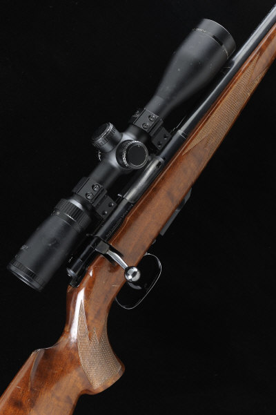 ANSCHUTZ A .222 REM MODEL 1740 BOLT-ACTION SPORTING RIFLE, NO. 1352310 23 1/2-inch barrel threaded for a sound moderator, the receiver mounted with a Hawke telescopic sight, bolt with flag safety, detachable box magazine, half length figured stock with pistol grip, cheekpiece and maker's butt plate, sling swivels, 6lb. 8oz., German nitro proof S1 |