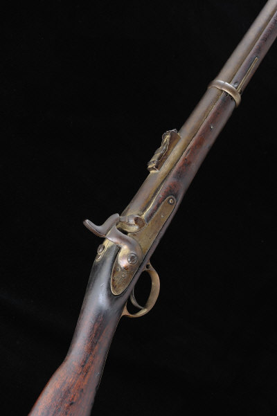 TOWER A .577 THREE-BAND ENFIELD PERCUSSION RIFLE 38-inch barrel with ladder rear sight, the lock dated 1857, full length stock with ramrod, 7lb. 12oz., worn overall |