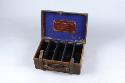 ARMY & NAVY A LEATHER CARTRIDGE MAGAZINE with compartments for about 250 cases, leather straps and dividers |