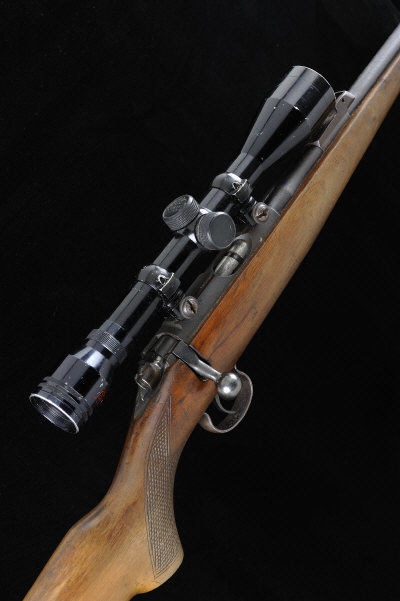BRNO A .22 MODEL 2 BOLT-ACTION SPORTING RIFLE, NO. 280104 19-inch barrel fitted with a sound moderator, the receiver mounted with a telescopic sight, half length stock with pistol grip, 14-inch pull, 6lb. 14oz., nitro proof, slight crack to stock S1 |