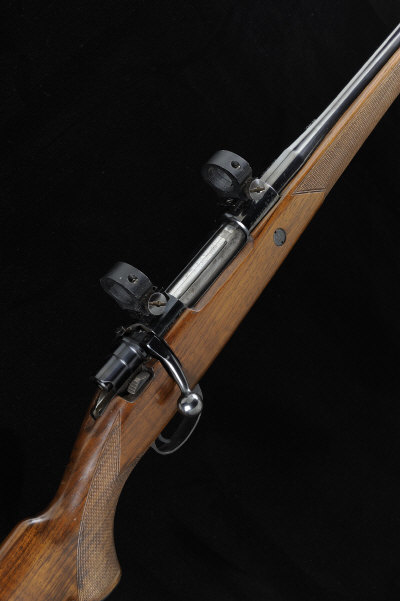 25 1/2-inch barrel, the receiver with scope rings, bolt with side safety, recoil stud, half length stock with pistol grip, cheekpiece and recoil pad, 14-inch pull, 8lb 4oz., German nitro proof