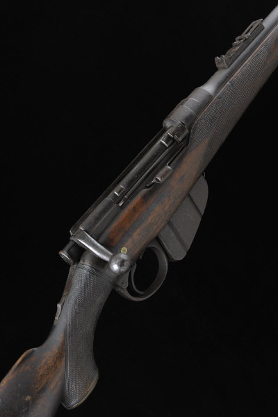 BSA A .303 LEE SPEED PATENT BOLT-ACTION SPORTING RIFLE, NO. B596 24 1/4-inch barrel with raised fore sight, folding leaf sights with folding ladder, receiver with magazine cut-off and detachable box magazine, tang safety, three quarter length stock with bayonet bar, chequered pistol grip and steel butt plate, 14-inch pull, sling swivels, 7lb. 11oz., nitro proof, lightly rusted overall S1 |