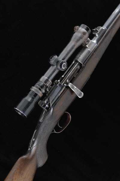 MANNLICHER A 6.5MM MODEL 1903 TAKE-DOWN BOLT-ACTION SPORTING RIFLE, NO. 1357 23-inch barrel with ramp fore sight with folding hood, rear sight with folding leaf, the receiver mounted with a Kahles Helier Super telescopic sight in quick detachable claw mounts, bolt with flag safety, tang with folding peep sight, half length stock with pistol grip, cheekpiece and rubber recoil pad, cracked at the hand, 13 3/4-inch pull, 8lb. 6oz., nitro proof S1 |