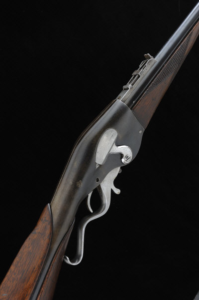 EVANS SPORTING RIFLE A .44 EVANS LEVER ACTION SPORTING RIFLE 30-inch barrel with adjustable ladder rear sight, marked "Evans Sporting Rifle", the receiver with loading lever and tubular butt magazine, two-piece stock with chequered fore-end and steel butt plate, 13-inch pull, 9lb. 6oz. S1 |