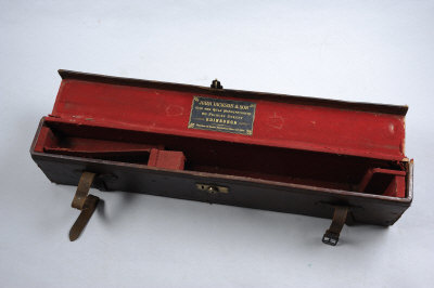 JOHN DICKSON & SON A LEATHER SINGLE MOTOR CASE with compartment for 30-inch barrels, the outside with the owner's initials "E.B.B.T., Gordon Highlanders"