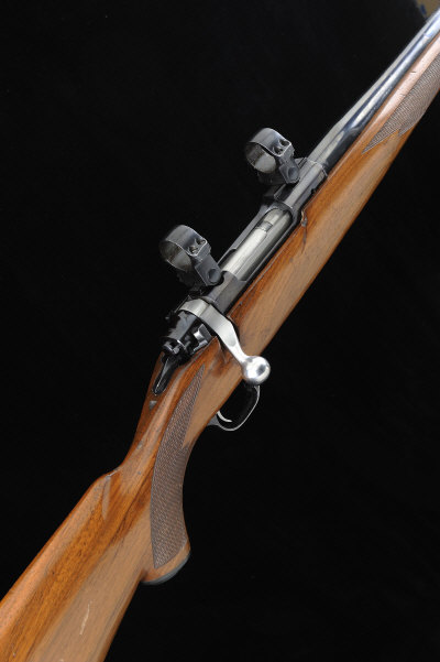 22-inch barrel, the receiver mounted with scope rings, bolt with side safety, half length stock with pistol grip and rubber recoil pad, 13 1/2-inch pull, 7lb. 12oz., nitro proof