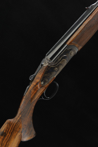 RIZZINI A 9.3X74R EXPRESS 92 MODEL SINGLE TRIGGER OVER AND UNDER EJECTOR RIFLE, NO. 44907 23 1/2-inch monobloc barrels with short raised rib and ramp fore sight, fixed rear sight, the frame, side plates and top lever retaining virtually all of its original hardening colour, 14 1/2-inch well figured stock with pistol grip and cheekpiece, 7lb. 3oz., Italian nitro proof, in its plastic case with J. Roberts & Son label S1 |