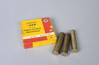 KYNOCH 5 RNDS OF .600 NITRO EXPRESS AMMUNITION 900 grns solid bullet, in its packet; together with 3 fired empty cases