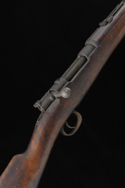 DWM A 7X57MM MODEL 1895 BOLT-ACTION SERVICE RIFLE, NO. OVS7046 29-inch barrel with folding ladder rear sight, receiver with charger guides, bolt with flag safety, three quarter length stock with hand guard, bayonet bar and barrel band, 13 1/4-inch pull, steel butt plate, sling swivels, 8lb. 9oz., nitro proof S1 |