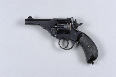 P. WEBLEY & SON A .455 MARK III REVOLVER, NO. 1472 4-inch barrel impressed with the maker's name on the top surface, the frame with winged bullet trademark and retaining much original finish overall, chequered composition bird's head grips, lanyard loop, black powder proof S5