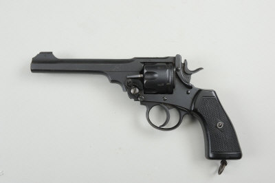 ENFIELD A .455 MK VI SERVICE REVOLVER, NO. 11665 6-inch barrel with broad arrow to top surface, the frame with impressed crown and dated '1924', chequered composition grips with lanyard loop, nitro proof S5 |