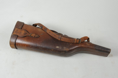A LEATHER DOUBLE LEG-OF-MUTTON GUN CASE