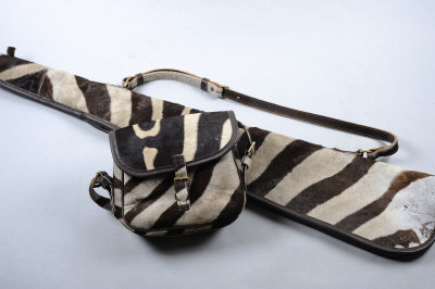 A ZEBRA SKIN GUN SLIP AND MATCHING CARTRIDGE BAG