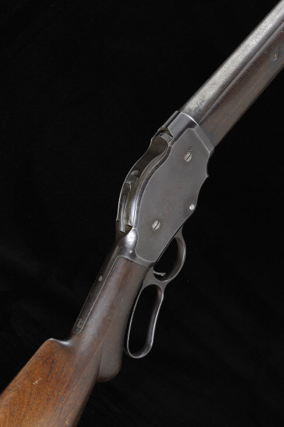 WINCHESTER A 12-BORE LEVER ACTION GUN, NO. 53057 30-inch barrel with 2 3/4-inch chamber, about 3/4 choke boring, half length magazine tube with unrestricted capacity, 13-inch stock with semi pistol grip, chequered steel butt plate, 7lb. 14oz., nitro proof S1 |