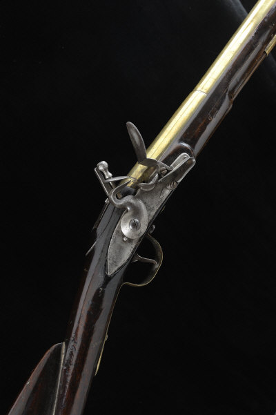 A BRASS BARREL BLUNDERBUSS 16-inch two stage barrel with flared muzzle, impressed with the maker's mark "IB", of approximately 8-bore, the plain lock with cock and frizzen, the full length stock with brass furniture, 13-inch pull, 6lb. 6oz., London black powder proof, stock with numerous repairs S58 |