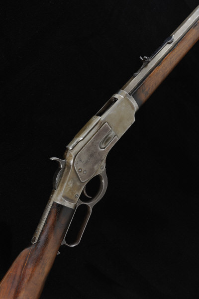 WINCHESTER A DE-ACTIVATED .32 MODEL 1873 LEVER-ACTION RIFLE, NO. 679219B 23 1/2-inch octagonal barrel with buck-horn rear sight, half length magazine tube, the receiver with sliding cover, 12 1/2-inch stock with crescent steel butt plate, 8lb. 2oz., pitted and worn overall, stock with old repairs |