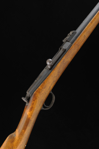 28 1/4-inch barrel with folding ladder rear sight, the receiver with Imperial crest, three quarter length stock with barrel bands and dated 1884, steel butt plate, 13 1/2-inch pull, 7lb. 12oz.