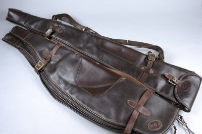 A PAIR OF FULL LENGTH LEATHER GUN SLIPS fleece lined with straps, etc; together with a matching pair of rifle slips (4) |