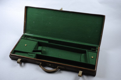A LEATHER GUN CASE with compartments for 30-inch barrels and another compartment suitable for a second set of barrels |