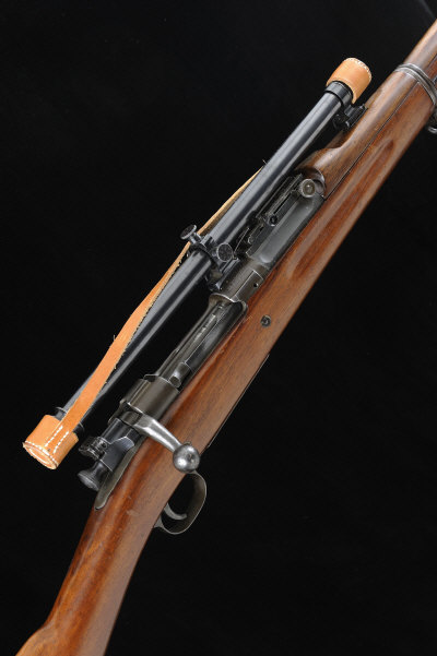 24-inch barrel, the receiver mounted with a Winchester A5 telescopic sight, bolt with flag safety, the three quarter length stock with straight hand and steel butt plate, 12 3/4-inch figured stock, 9lb. 7oz., nitro proof, the scope appears to be a later addition, the bolt cannot be opened when the scope is fitted