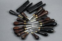 A GROUP OF GUN MAKERS TURNSCREWS including: named turnscrews by J. Woodward & Sons, Cogswell & Harrison, striker disc removal key, chamber brush and 16 further turnscrews |