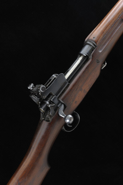A .303 P14 BOLT-ACTION SERVICE RIFLE, NO. W183875 - WITHDRAWN 26-inch barrel, the receiver fitted with a Parker Hale 5B aperture rear sight, side safety, the three quarter length stock with hand guard and steel furniture, 13-inch pull, 9lb. 12oz., nitro proof S1 |