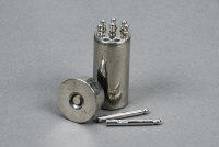 A NICKEL-PLATED PLACE FINDER in the form of an 8-bore cartridge, the base unscrewing to reveal 8 numbered pegs |