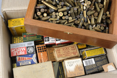 including many assorted boxes of .22 ammunition, .320 revolver, 6.35mm, .303; together with numerous loose rounds of rook rifle and revolver ammunition
