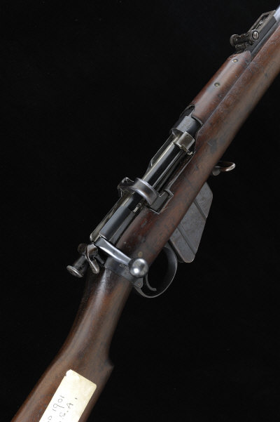 30-inch barrel with ramp fore sight, folding ladder sight, bolt with safety catch, receiver with charger guide, magazine cut-off removed, butt socket with crowned VR and dated 1901, 13 1/4-inch pull, 9lb. 4oz., nitro proof