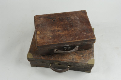 A BRASSBOUND LEATHER CARTRIDGE MAGAZINE for about 500 case; together with a further cartridge magazine (2) |