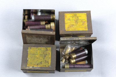 ICI A SMALL QUANTITY OF ENGINE STARTER CARTRIDGES of various types, in their maker's tins