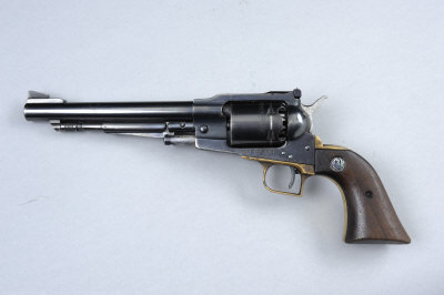 RUGER A .44 "OLD ARMY" MODEL PERCUSSION REVOLVER, NO. 140-21353 7 1/2-inch barrel, the solid frame with adjustable rear sight and loading lever, brass back strap with walnut grips, black powder proof