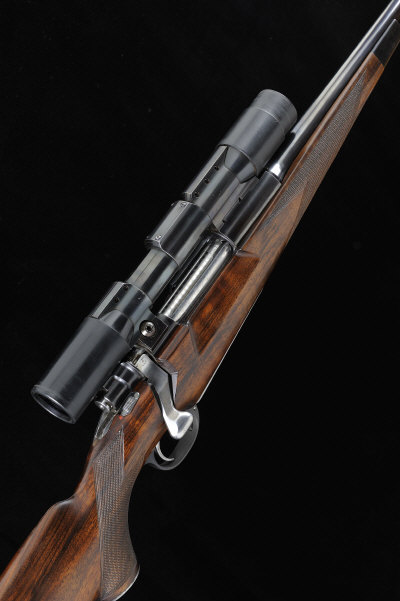 DAVID LLOYD A 7MM REM MAG BOLT-ACTION SPORTING RIFLE, NO. 309 24-inch barrel, the Mauser 98 action mounted with its integral telescopic sight, bolt with swept back handle and side safety, magazine with hinged base plate, half length stock with pistol grip, cheekpiece and recoil pad, 13 1/2-inch pull, 8lb. 4oz., nitro proof |